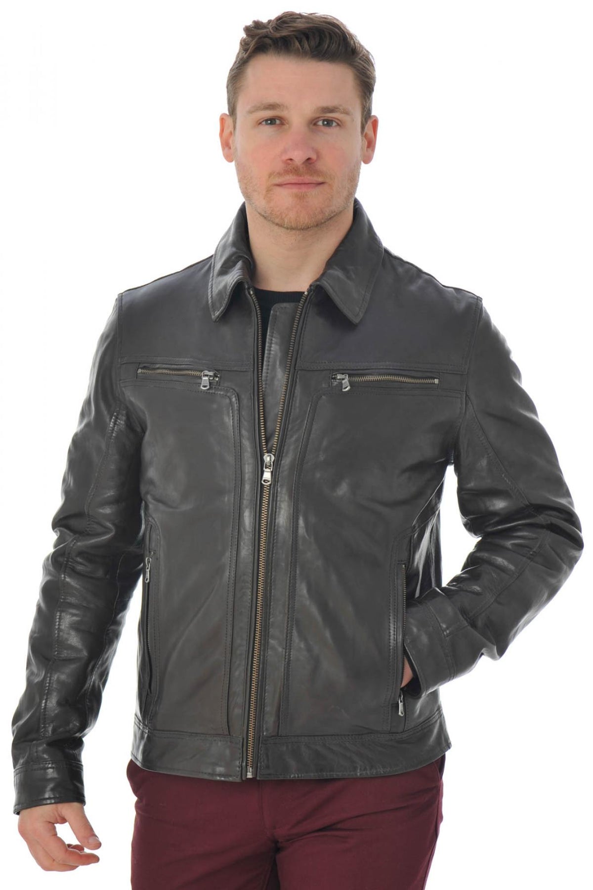 Lambskin leather jacket with shirt collar - Image n°4