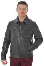 Lambskin leather jacket with shirt collar - Image n°1