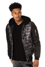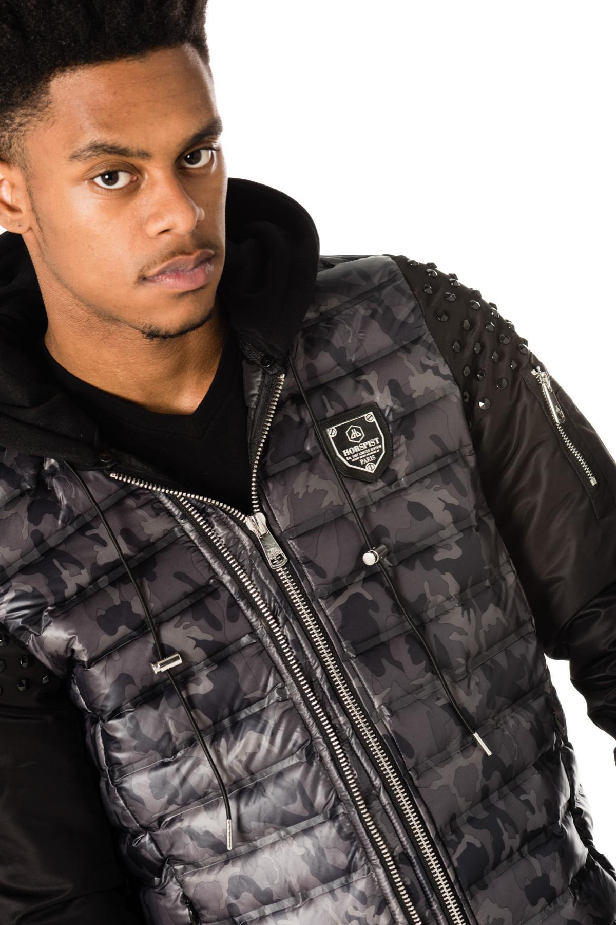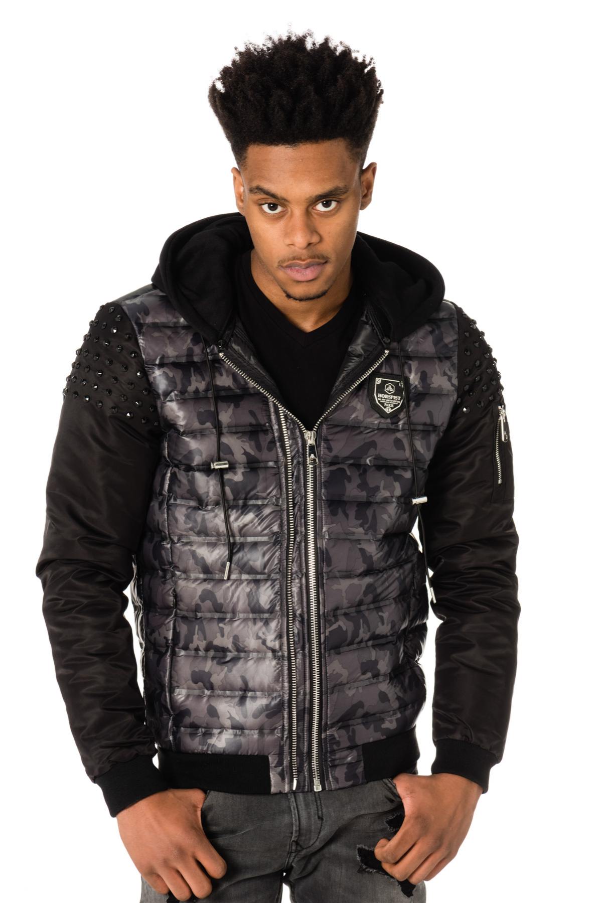 Camouflage print jacket studded on the sleeves - Image n°1