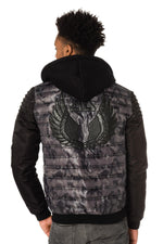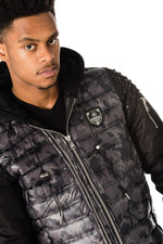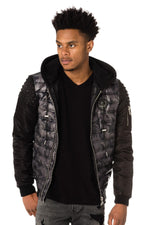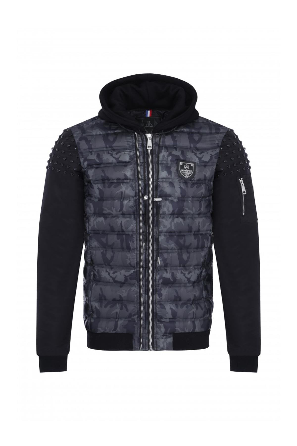 Dit vernieuwde bomberjack brengt; geef je look een trendy touch dankzij deze mouwen met studs en geborduurde camouflageprint.