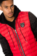 De POWELL M100 ROOD ZWART is een gewatteerd nylon jack. voorzien van 90% dons en 10% veren vulling.