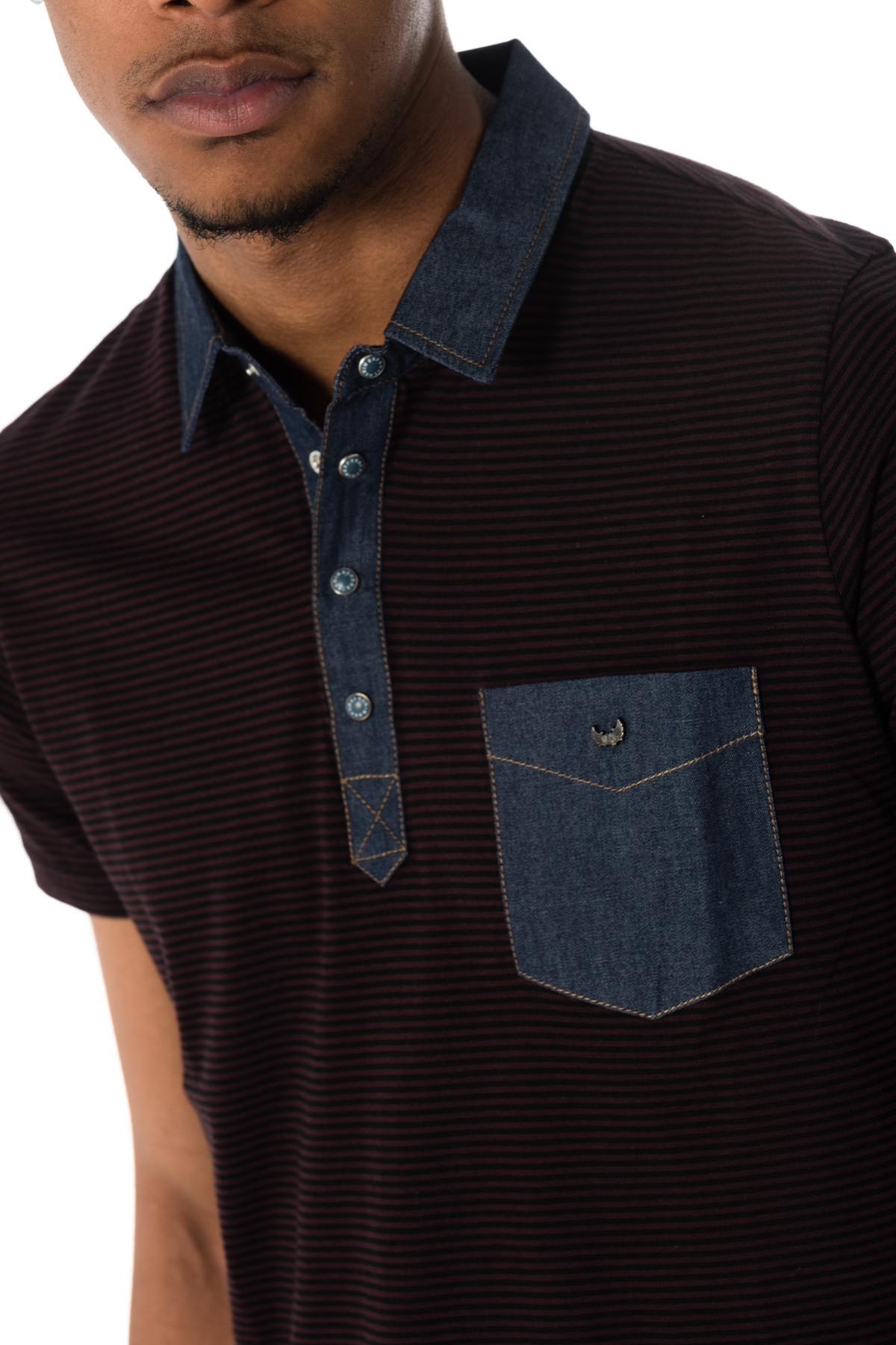 De DRAZ WINE is een mooi katoenen poloshirt met gestreept effect. bordeaux en zwart.