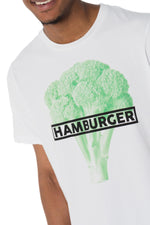 Op de voorkant van het model vinden we een broccoli bedrukt met daaronder de inscriptie van de hamburger.