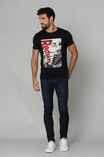 Prachtig FLOOR HONDA ZWART t-shirt van het merk REDSKINS, goedgekeurd door menté met een schitterende print; geïnspireerde Hong Kong-daken aan de voorkant.