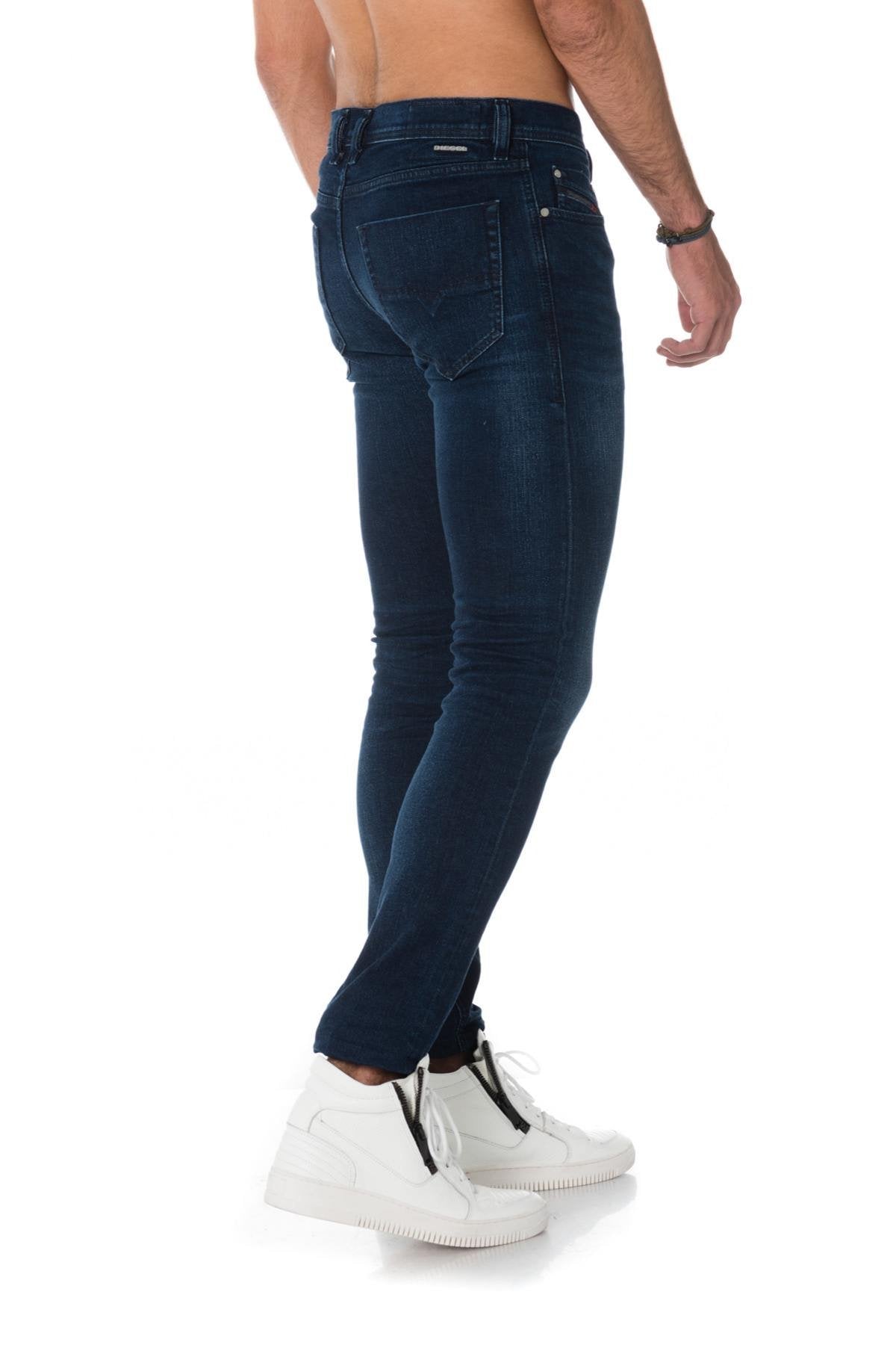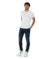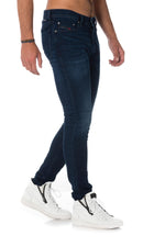 De TEPPHAR 084VG is een donkerblauwe jeans. met een lichte wassing op de knieën.