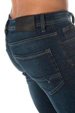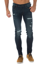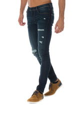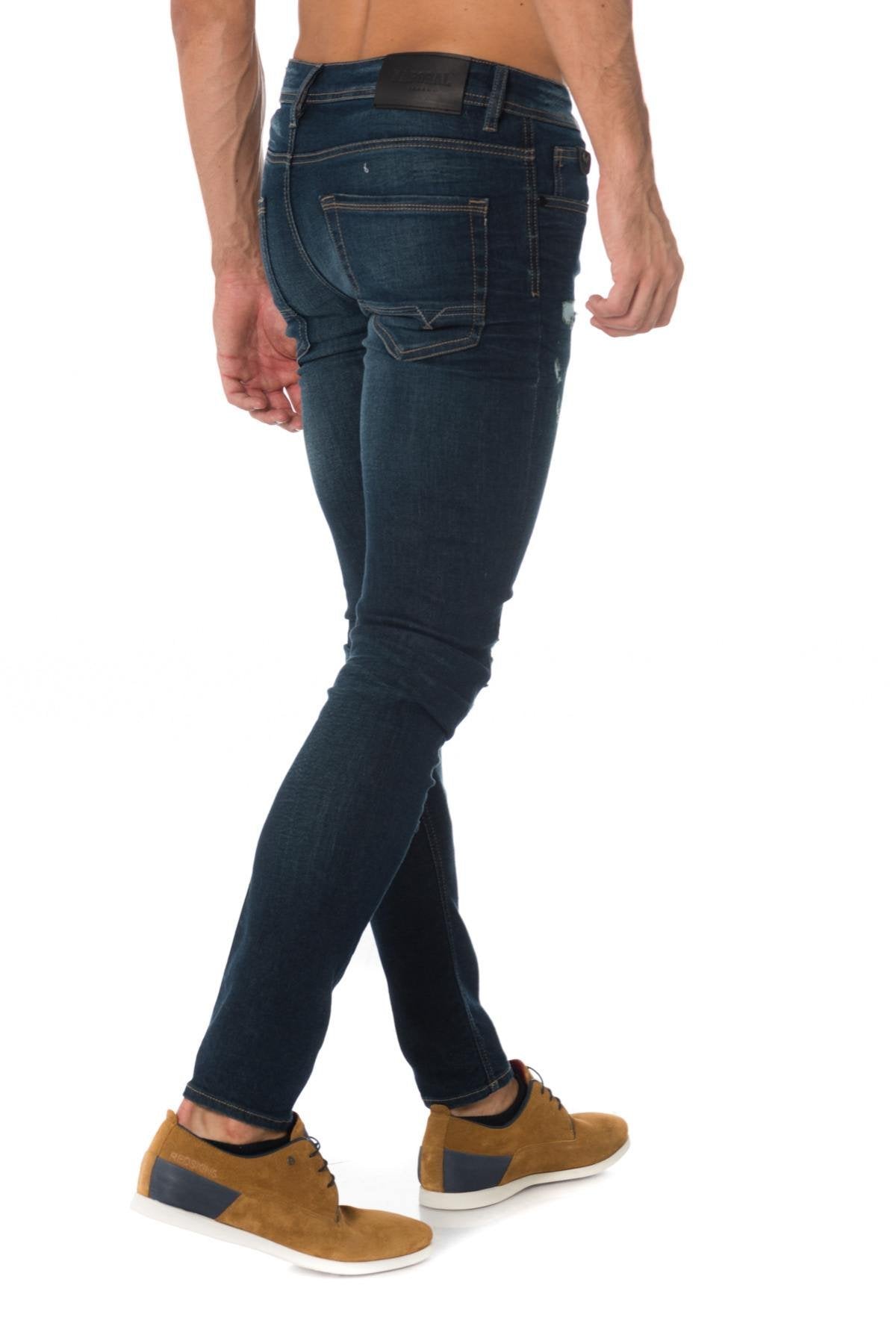 De PIXEL KLASS DESTROY is een blauwe jeans met een versleten stijl. en verouderd waarvan de turkooisblauwe tranen voor een mooi contrast zorgen.