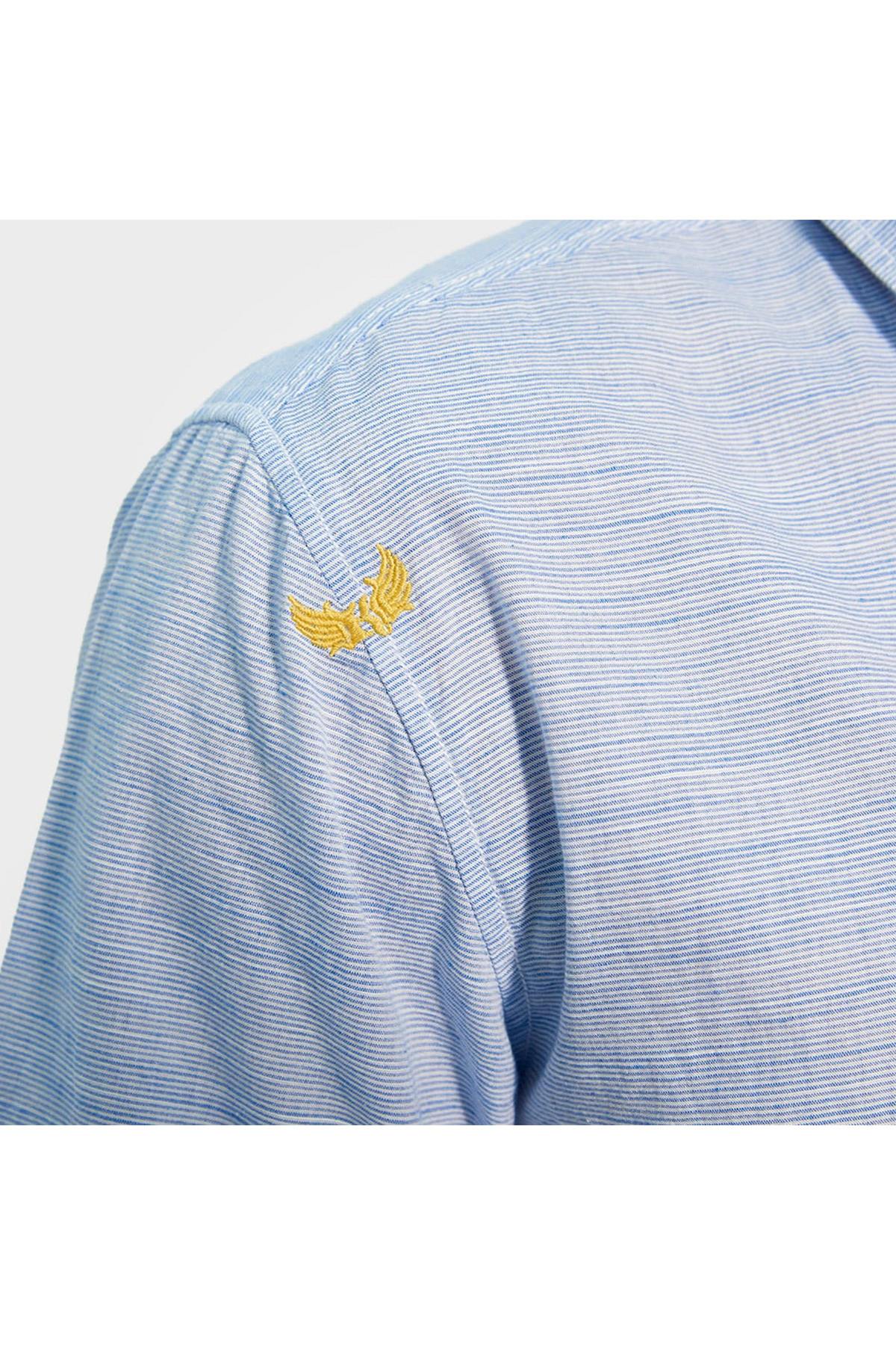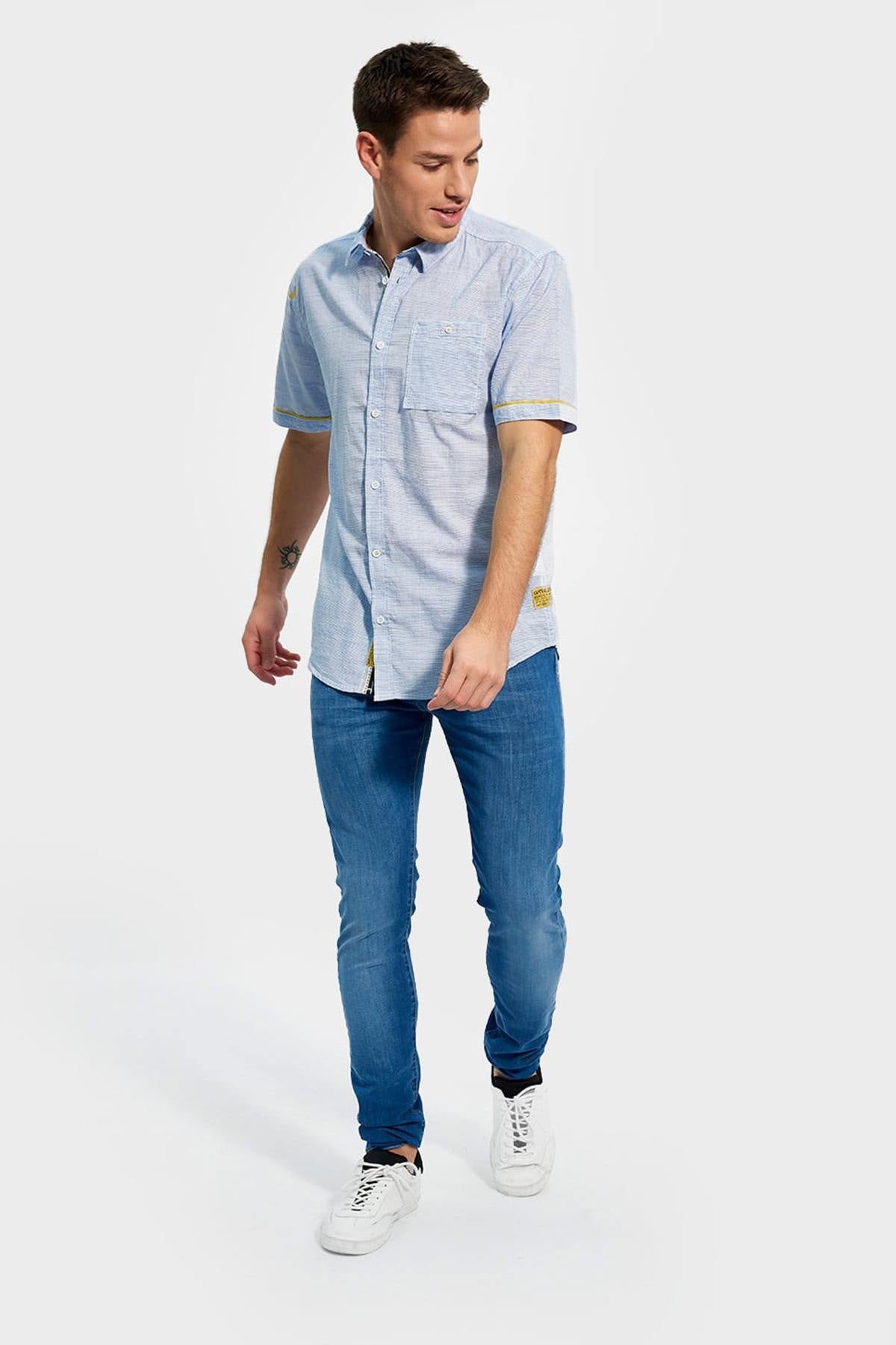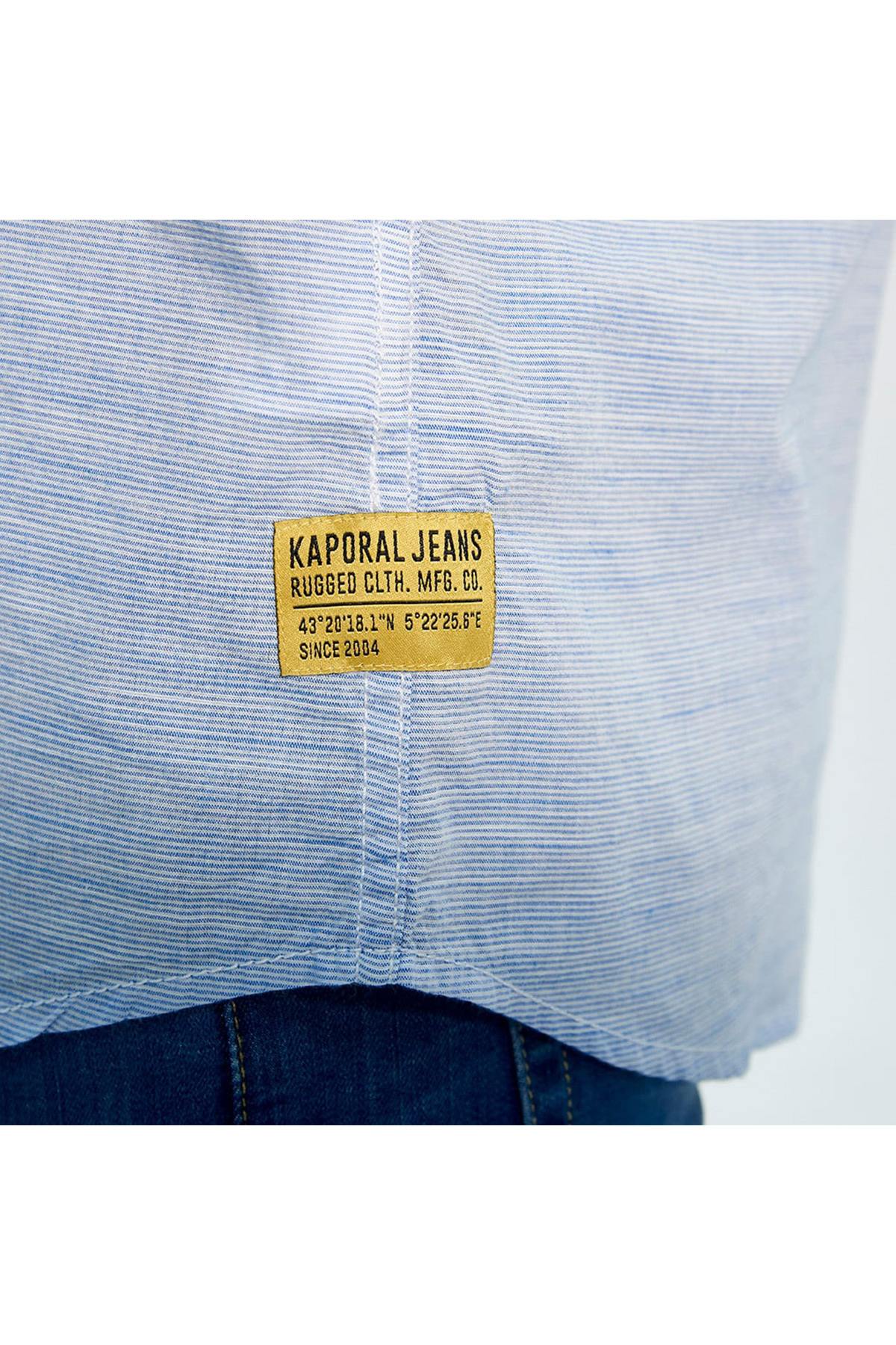 Heren, laat u verrassen door de klasse van dit Wisky Blue overhemd van het merk Kaporal. Dit kledingstuk is gemaakt van katoen in een rechte snit met een afgeronde zoom en verleidt door zijn overzichtelijke strepen.