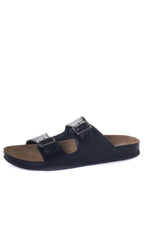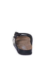 In hun mooie zwarte kleur bestaan ​​deze sandalen uit twee bandjes die gesloten kunnen worden met metalen gespen. Op de linkerzijde en op de kraftkleurige zool staat de merknaam geschreven. De buitenzool is antislip, waardoor je deze schoenen op elk terrein kunt dragen.