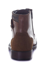 Van rundleer, stevig en resistent, een buitenzool van elastomeer en een leren binnenkant.
