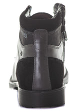 Koehuidleer aan de bovenkant, textielgedeelte op de enkel en inzetstuk in suèdestijl op de hiel.