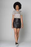 Hier is de sublieme JUBIGAEL LAMB CASTEL R-BROWN leren rok van het merk Rose Garden.