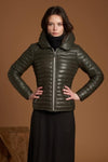 Khaki genuine sheepskin leather down jacket - Image n°1