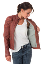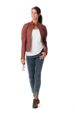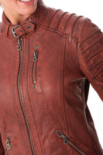Dit model is prachtig gemaakt. met ronde kraag met gesp, opstaande naden bij de schouders en comfort inzetstukken aan de achterzijde. de maat voor een echte bikerstijl.