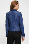 Biker style jacket in blue vegetable lambskin - Image n°1