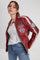 De jas "Soline Lamb Vita Red Chili" belichaamt de essentie van bikerstijl voor dames en combineert een pittig ontwerp met rebelse elegantie. Dit model is ontworpen in rood lamsleer en heeft een bikerkraag en een slimfit pasvorm, perfect voor alle seizoenen.