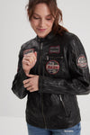 Black leather biker jacket for women - Image n°3