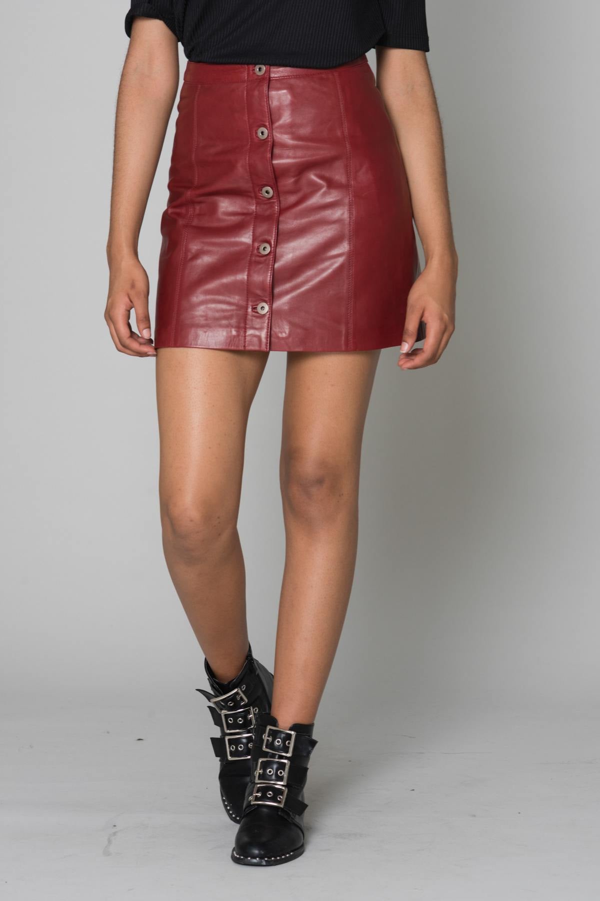 De JUBIGAEL LAMB CASTEL RED CHILI is een prachtige lamsleren rok met een polyester voering die te koop is. van het merk ROSE GARDEN. Sluiting aan de voorzijde met knoopjes....
