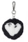 Oakwood biedt een tweekleurige zwart-witte sleutelhanger van konijnenbont versierd met 2 zwarte strass-steentjes die lijken op; kleine oogjes.