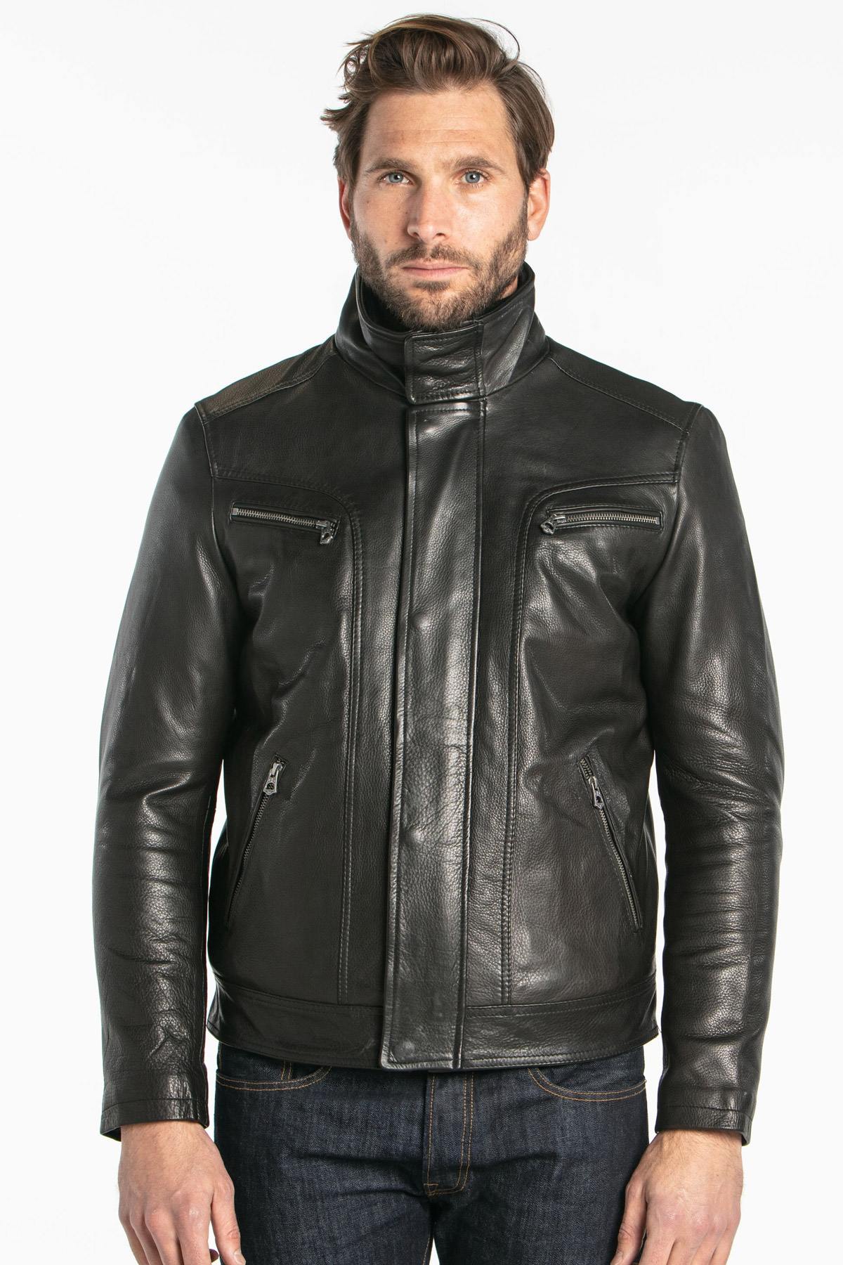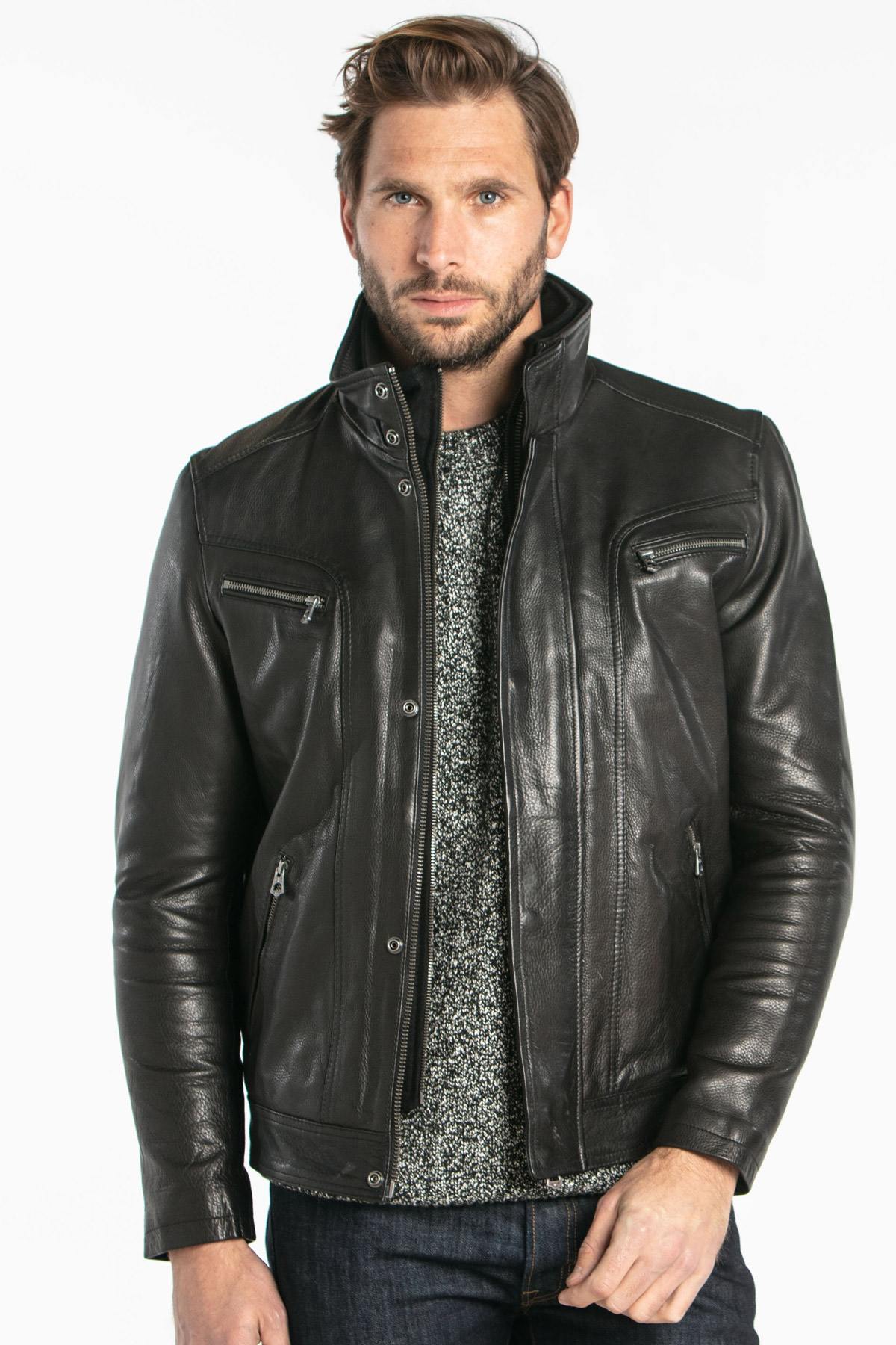 Thick cowhide leather jacket - Image n°1
