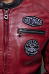 We vinden een bikerkraag met drukknoop en een ritssluiting. Gecentreerde dia. Het oppervlak is gladgemaakt en versierd met patches uit het mechanische universum van Daytona. Aan de buitenkant zijn 4 zakken voorzien, allemaal met ritssluiting. 2 van de zakken zijn op borsthoogte geplaatst en 2 andere zijn diagonaal aan de onderkant van de jas geplaatst. In de voering zijn 3 zakken geïntegreerd, waarvan 1 tot 2 zakken. druk en een andere ritste dicht. Een poot-klikknop markeert ook de maat. De polsritsen maken de look van de rijder compleet.