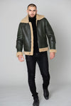 Khaki and beige shearling bomber jacket - Image n°1