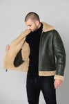 Khaki and beige shearling bomber jacket - Image n°3