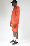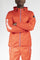 Deze sportjas is voorzien van een grote capuchon met elastisch trekkoord en een lange wit, rood en blauw metallic ritssluiting. De uiteinden van de lange mouwen zijn geribd. De linkermouw is versierd met een merkmedaillon, terwijl de rechtermouw is bedrukt met de merknaam in groot formaat.