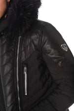 Afgewerkt met een afneembare capuchon met ritssluiting en prachtig wasbeerbont dat kan worden losgemaakt met drukknopen.