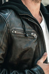 Ontdek het Daytona Winston jack met capuchon, een musthave voor heren. Dit zwarte leren jack van plantaardig lamsleer combineert bikerstijl en comfort voor alle seizoenen.
