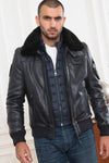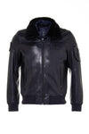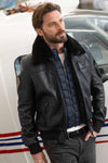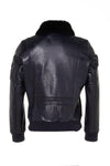 Schapenbontkraag afneembaar met knopen, die na verwijdering weer aan de voering kunnen worden bevestigd. onthult een leren overhemdkraag.
