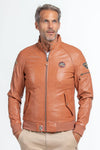 Dit is een herenjasje met mandarijnen kraag met drukknopen. plaatst hem meteen in de categorie motorrijders. Wij houden van kwaliteit schapenleer. bovenwerk vervaardigd door de ambachtslieden van 24h Le Mans. De normale snit is bedekt met naden en stiksels die een viriel en sportief silhouet structureren. De manchetten en taille zijn van geribd breisel en geven het kledingstuk een teddy-touch. Aan de voorkant zitten de schuine zijzakken. flappen met drukknopen. De verschillende logopatches geven het model energie en brengen ons naar de moeilijkste autoracecircuits. De centrale sluiting is voorzien van een ritssluiting, evenals de zak die de linkerarm afsluit.