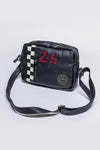 Black racing leather shoulder reporter bag - Image n°1
