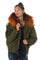 Women's khaki jacket with hood and orange raccoon fur - Image n°1