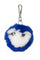 Oakwood biedt een sleutelhanger in tweekleurig blauw en wit konijnenbont versierd met 2 zwarte strass-steentjes die lijken op; kleine oogjes.