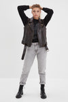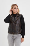 Damesjas rose garden MADELINE SHEEP VEG KANWAL WASHED BLACK COGNAC