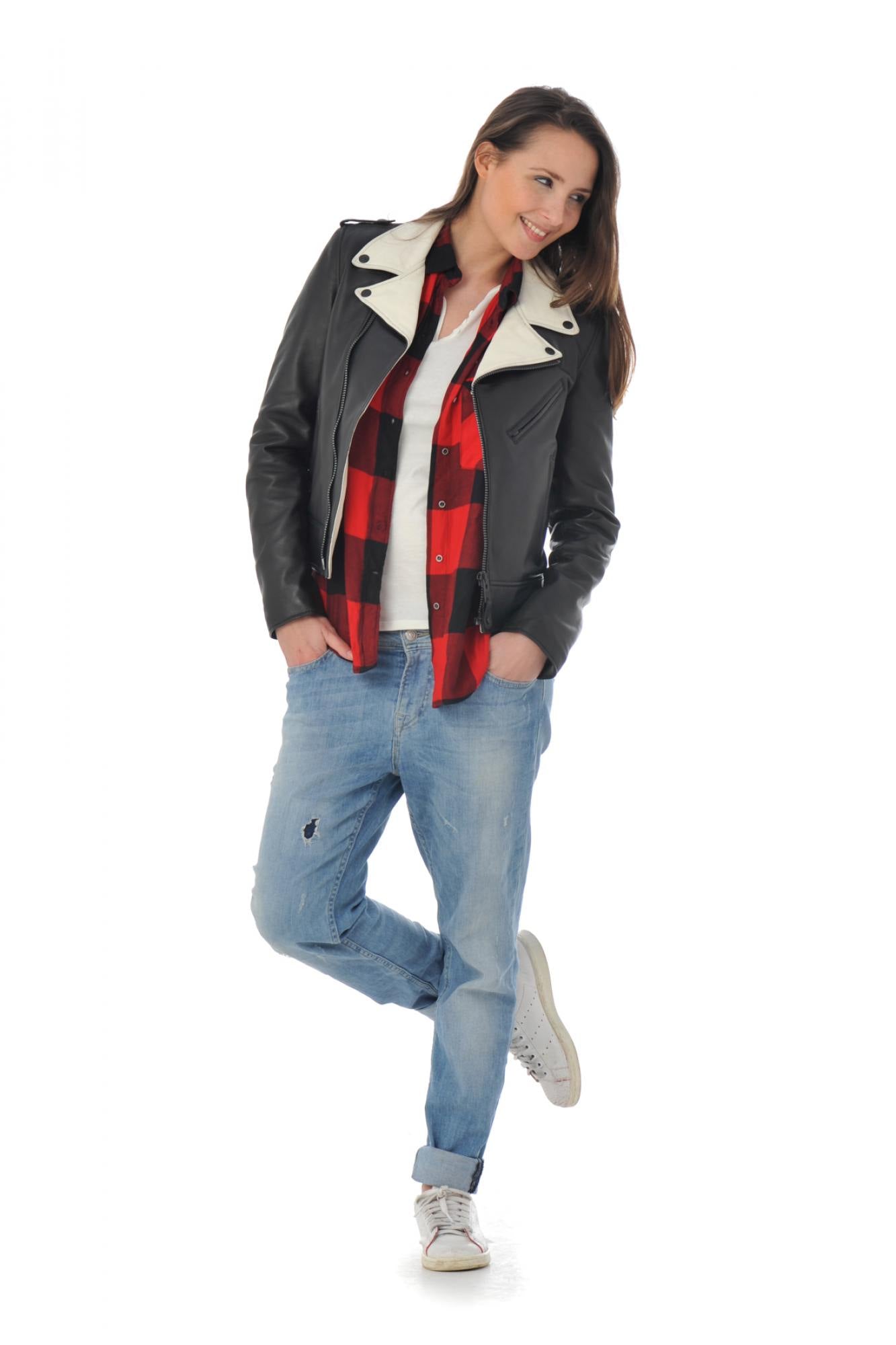 Damesjas Schott LCW1601D ZWART GEBROKEN WIT