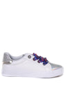 Deze trendy sneaker heeft het allemaal. Het biedt een prachtig bovenwerk van rundleer, een synthetische binnenzool en een rubberen buitenzool die uitzonderlijk comfort bieden. De ronde neus is modern en versterkt de elegantie van een sportieve look. We houden van de zilveren toets en het iriserende effect dat de bovenkant van dit zeer vrouwelijke model accentueert. De sluiting bestaat uit 4 paar metalen oogjes, gekruist door fraaie sjaalachtige veters. Op de voorkant is het Kaporal Jeans-logo gedrukt. aan de zijkant