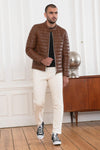 De constructie van schapenleer van dit jack biedt kwaliteit. en getuigt van de nauwkeurigheid van de ervaren vakmensen van Oakwood. Dit jack is volledig gewatteerd en heeft een voor de bikerstijl typische mandarijnkraag, die wordt gesloten met een drukknoopsluiting. Onder de kraag kan hij worden aangetrokken door middel van een centrale ritssluiting. We houden van het patina-effect. van het oppervlak en de lichte vouw waardoor u de delicate details kunt waarderen die de schoonheid van uw werk bepalen. hoogwaardig leer. De contrasterende grijze voering bevat vakken waarin je je essentiële spullen kunt opbergen.