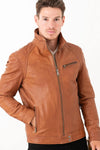 The WOLF EARTH TAN jacket by Cityzen is a must-have for men seeking a leather jacket that combines elegance and versatility. Made from vegetable-tanned sheepskin in a tan shade, it's ideal for year-round wear.