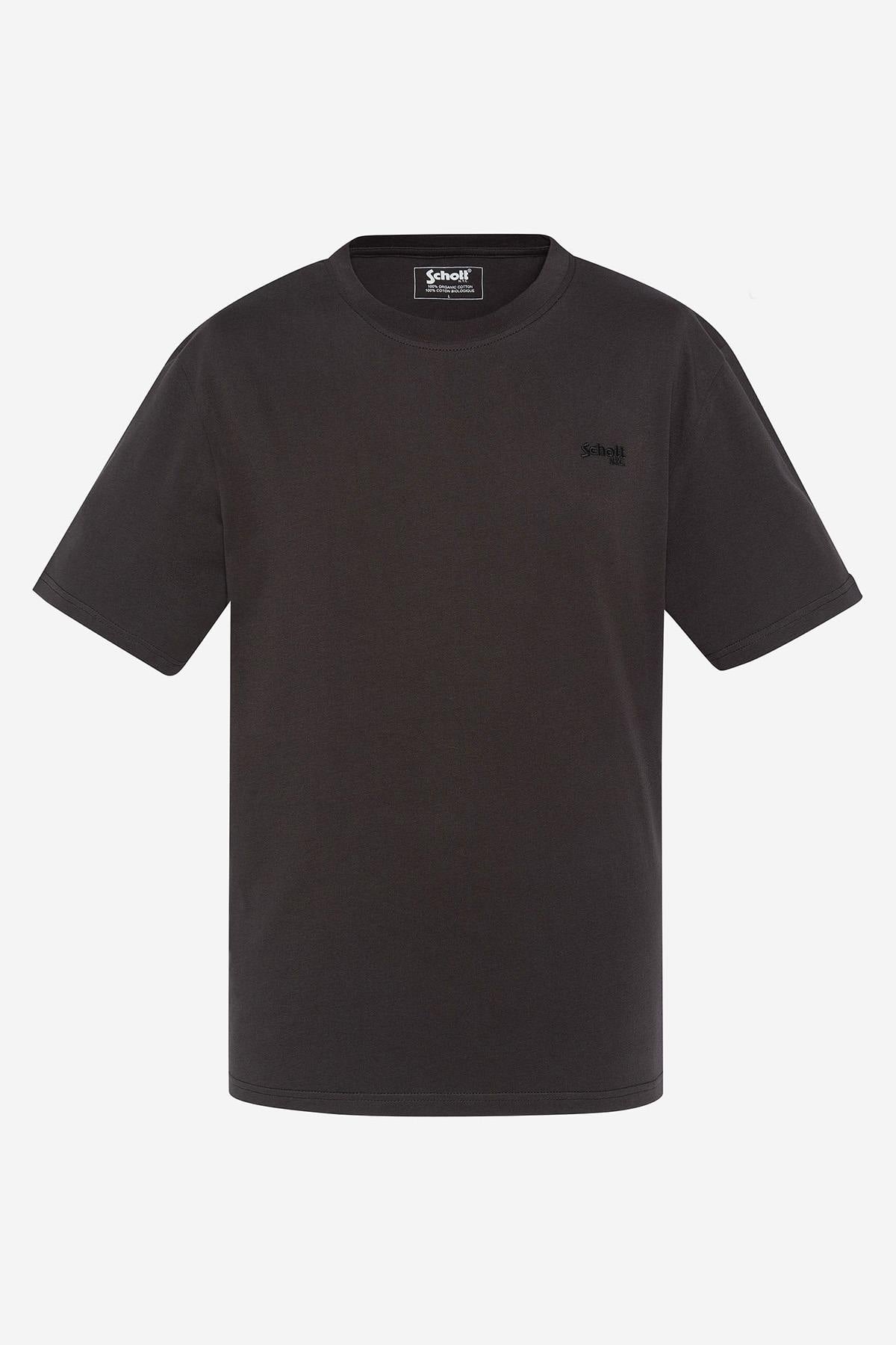 Heren T-shirt Schott TSBASE01 GEWASSEN ZWART/GEBROKEN WIT
