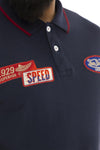Navy blue cotton polo shirt in garage style - Image n°1