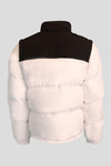 Met een hoge kraag die langs de as kan worden gesloten met een lange metalen ritssluiting, is dit jack zwart aan de bovenkant en wit aan de onderkant. Aan elke kant zijn twee zakken geplaatst en de handtekening van het merk is in het wit op de zijkant geschreven. linkerborst. De mouwen zijn afneembaar en hebben elastiek aan het uiteinde.