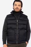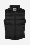 Het SC1967 "Hawkvrs Black/Black" mouwloze donsjack van Schott maakt deel uit van de herfst-wintercollectie en combineert functionaliteit en stedelijke stijl. Dit moderne kledingstuk in zwart nylon is ontworpen voor mannen en is essentieel voor de garderobe van elke man.