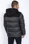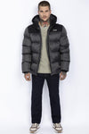 Two-tone gray and black hooded down jacket - Image n°1