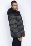 Two-tone gray and black hooded down jacket - Image n°3