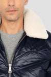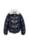 Oversized shiny textile down jacket with faux fur collar - Image n°1