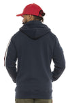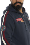 Hooded zip-up sweatshirt with sleeve stripes and patches - Image n°1