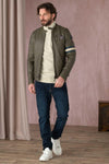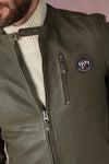 Het Gary Sheep Crown Khaki jack is gemaakt van glad kakikleurig schapenleer, voelt zacht aan en heeft een verfijnde uitstraling. Het onderscheidt zich door de bikerkraag met drukknoop, de witte en blauwe horizontale banden op de linkerarm en de 'Steve McQueen'-patches die een vleugje authenticiteit toevoegen. Met zijn slimfit-snit is hij perfect passend voor een moderne en gepolijste look. Het heeft drie buitenzakken met ritssluiting, waarvan twee aan de zijkant en één op de borst, en twee binnenzakken voor praktische opbergruimte. De beige katoenen binnenvoering is voorzien van een Steve McQueen-print, een eerbetoon aan het bioscoop- en race-icoon.