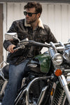 De MARK-IV jas van MASTER is ideaal voor wie op zoek is naar iets nieuws. express authentieke vintage stijl. Met zijn leer, de versnelde patina en zijn opvallende details past hij perfect in elke ruimte. klassieke stukken voor een resoluut mannelijke look. Draag hem met raw denim en leren laarzen om de stoere esthetiek te benadrukken. De kraag van schapenvacht voegt een vleugje warmte en verfijning toe aan je outfit. je winteroutfits. Laat de tijd de schoonheid van het leven onthullen. unieke patina, waardoor uw MARK-IV een gepersonaliseerd symbool wordt. van uw eigen reis naar onze zijde.
