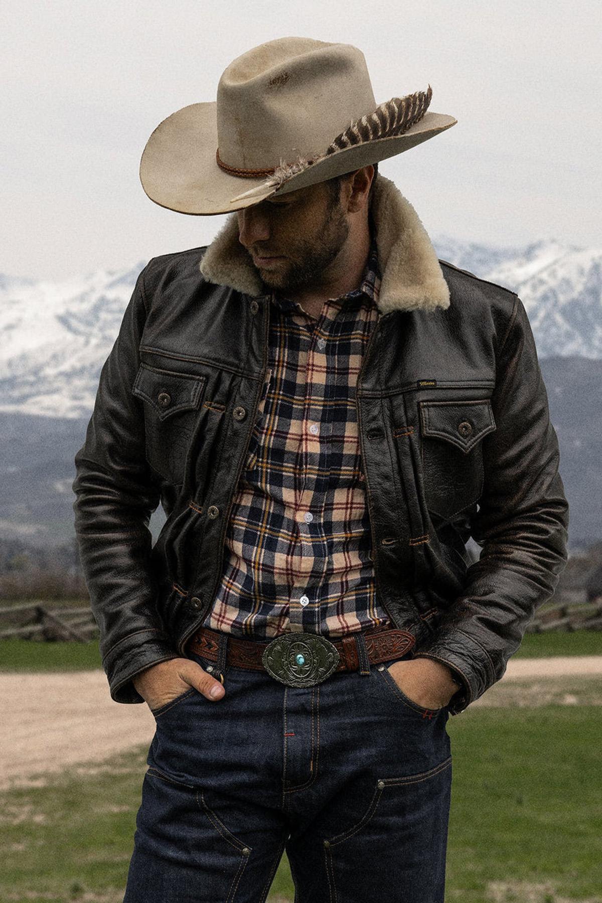 Het iconische truckersilhouet, geliefd om zijn tijdloze aantrekkingskracht, wordt versterkt door verbeterde symmetrie in de plaatsing van de knopen en een contrasterend plooistikpatroon. . Voor extra warmte tijdens de koude maanden is de jas voorzien van een omgeslagen kraag van schapenvacht; en een lichte isolatielaag.